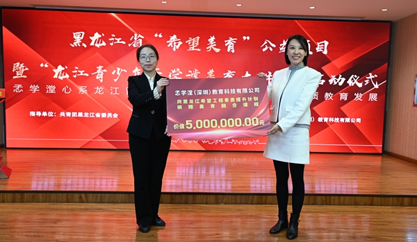 心系龍江留守兒童成長,百萬愛心助力“希望美育”。儀式上,孞學(xué)漟(深圳)教育科技有限公司向“希望工程素質(zhì)提升計劃”捐贈價值500萬元美育融合課程,成為黑龍江省“希望美育”公益項目的首筆捐贈,黑龍江省希望工程捐助中心、黑龍江省青少年發(fā)展基金會與深圳市孞學(xué)漟教育科技有限公司將共同打造“龍江青少年孞學(xué)漟美育大講堂”系列公益課程。項目旨在為廣大鄉(xiāng)村美術(shù)教師與學(xué)生提供更為直觀和便捷的專業(yè)化美術(shù)指導(dǎo),提升學(xué)生對美的認知和感受能力,培養(yǎng)學(xué)生的創(chuàng)造力和想象力,幫助鄉(xiāng)村青少年陶冶高尚情操、塑造美好心靈,實現(xiàn)全面發(fā)展。此次合作將連續(xù)實施5年,助力萬名龍江學(xué)子“發(fā)現(xiàn)生活中的美”。