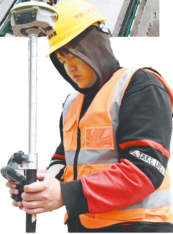 工作人員手持GPS精準(zhǔn)定位。本報記者 郭俊峰攝