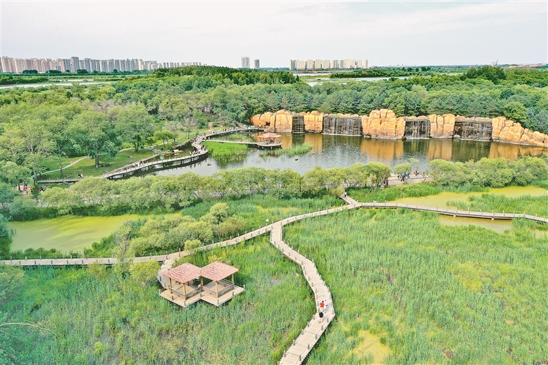 16日,陽光明媚,空氣清新,哈爾濱市迎來了好天氣。太陽島上,草木茂盛,百花爭艷,許多本地市民和南方游客組團來到這里避暑游玩。有的游人搭起帳篷野餐,有的游人走上濕地棧道觀賞美麗風景。孩子們玩過各種游樂項目后,再與小鹿、松鼠等小動物來個親密接觸。