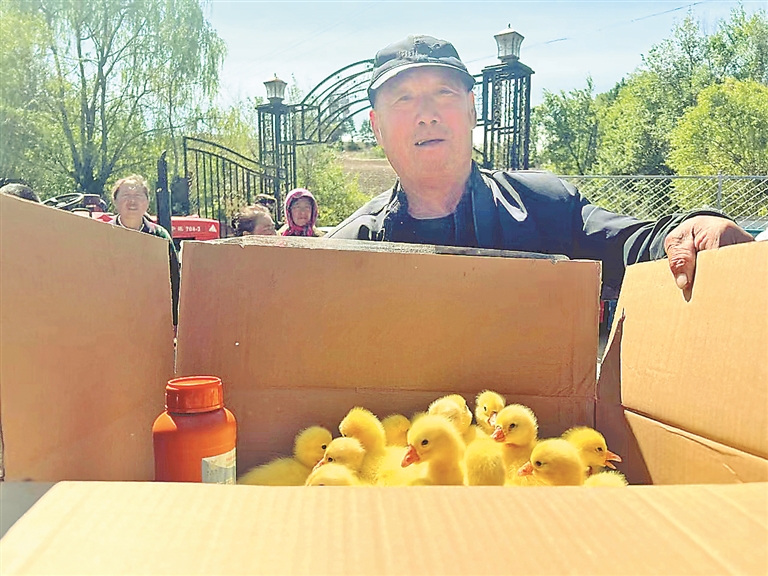 村民領(lǐng)取預(yù)訂鵝雛。