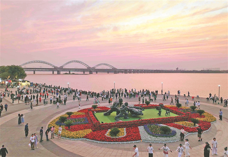 游人如織的景陽(yáng)廣場(chǎng)。