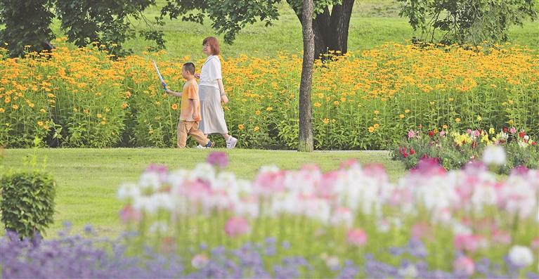 夏日的太陽島風(fēng)景區(qū),花團(tuán)錦簇,百余個(gè)品系的花卉爭奇斗艷,幽香陣陣,吸引大批游客來此打卡。