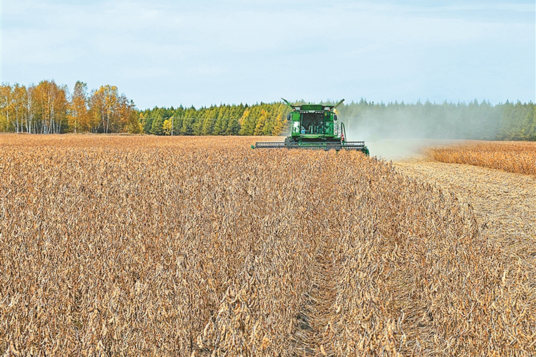 大豆收獲現(xiàn)場。張宏 郝愛琦攝