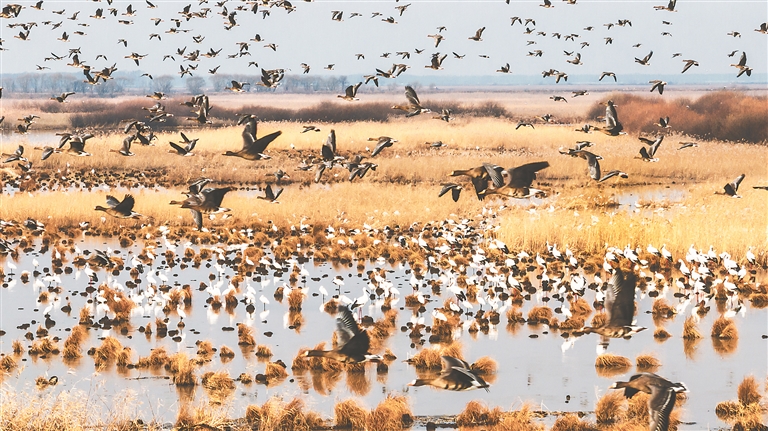 東方白鸛集結(jié)寶清