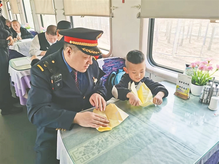 本報訊(張蔚萌 王夢 記者 王迪)近日,由鄭州開往海拉爾的K927次列車從昌圖站駛出后,列車長孫志強接到12306轉發(fā)的緊急尋人求助工單。經過與客服溝通了解后得知,旅客劉玲玲帶6歲兒子劉俊澤從沈陽北站乘車至昌圖站,因下車時忙于整理行李,將座位上熟睡的孩子遺落在列車上。列車長孫志強通過對講機立即組織各節(jié)車廂列車員尋找孩子,確定孩子位置后迅速趕到現場。為了緩解孩子的緊張情緒,他化身“臨時爸爸”,將孩子帶到了餐車,不僅準備了一些自帶的小零食,還陪孩子一起折紙飛機。當列車??块L春站后,孫志強按照其母親劉玲玲的要求,將孩子安全移交給長春站工作人員,等待其家屬前來接領。