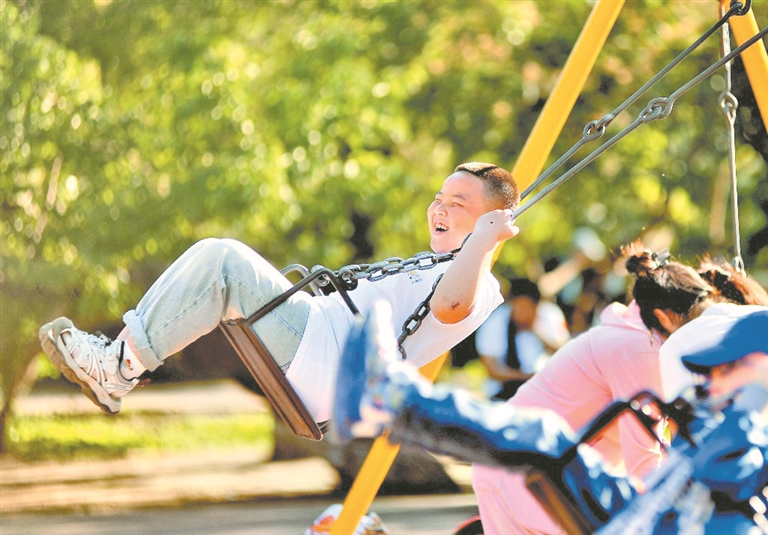 1日,哈爾濱市兒童公園內,孩子們坐小火車、滑滑梯、騎自行車、放小飛機、蕩秋千、玩蹺蹺板,快樂地度過自己的節(jié)日。