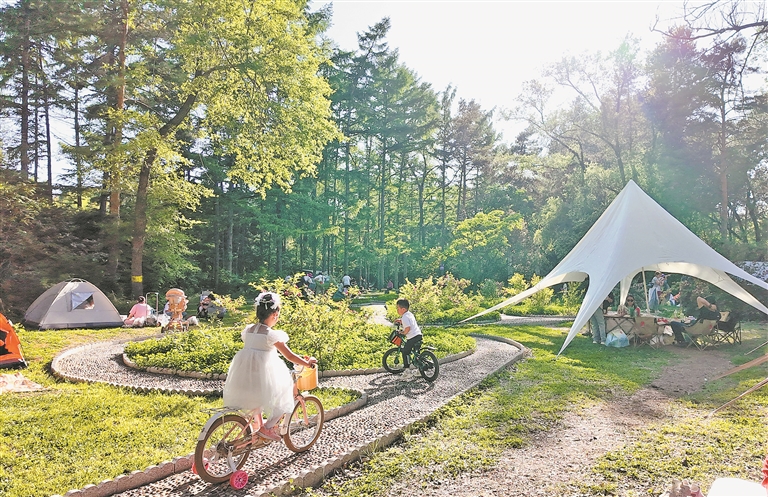在省森林植物園內,孩子們在草坪上放風箏、吹泡泡、追逐嬉戲,盡情享受假日好時光。