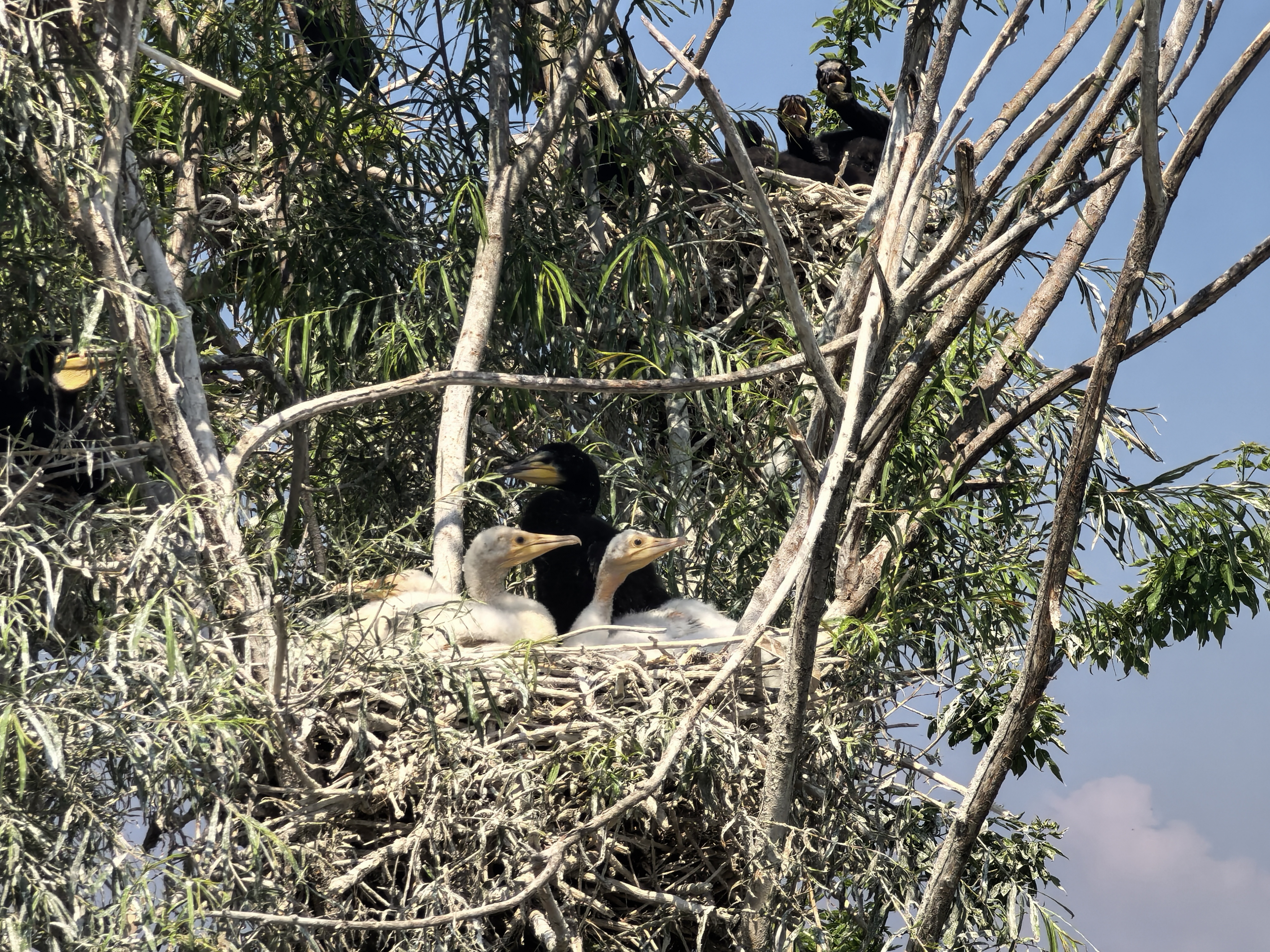 近日,黑龍江肇東千鶴島旅游風(fēng)景區(qū)傳來令人振奮的消息,工作人員在日常鳥類監(jiān)測中,驚喜發(fā)現(xiàn)一窩全國罕見的白鸕鶿在巢穴中。這也是千鶴島旅游風(fēng)景區(qū)首次記錄到白鸕鶿的蹤跡,為區(qū)域生物多樣性研究提供了全新樣本。