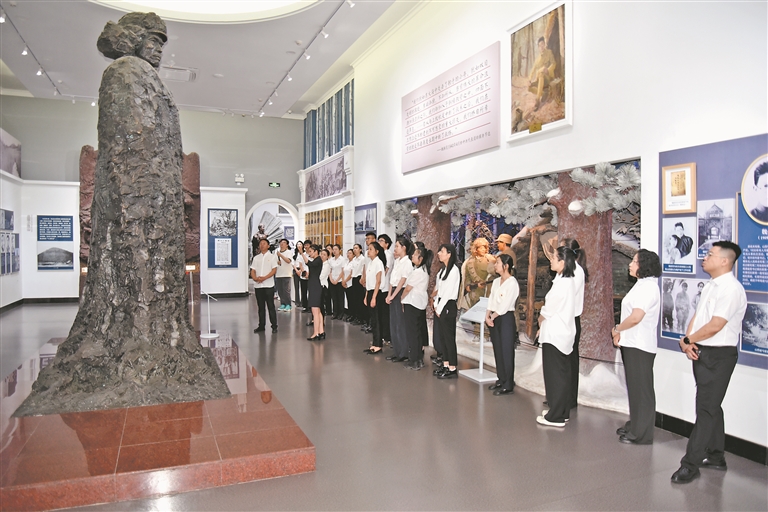 紀念館內(nèi),講解員深情朗誦《盧溝曉月》,將人們的思緒帶回“盧溝橋事變”那個山河破碎、狼煙四起的夜晚。隨后,大家跟隨講解員參觀了“黑土英魂陳列”,在一件件珍貴文物與歷史畫卷中重溫崢嶸歲月,感悟英烈精神。