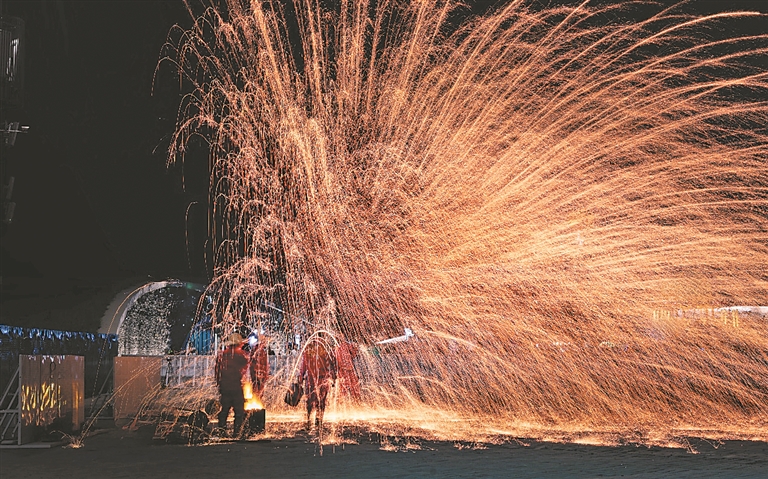 每晚兩場打鐵花演繹“硬核浪漫”