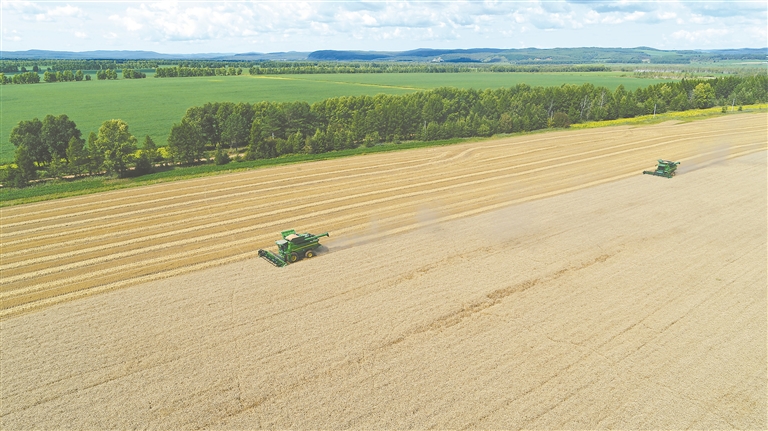 錦河農(nóng)場(chǎng)有限公司高寒小麥迎來(lái)收獲季。 王洪玲 金昌明攝