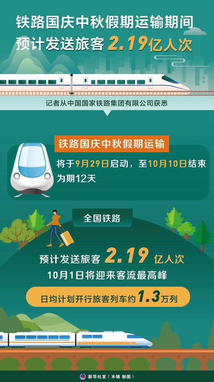鐵路國(guó)慶中秋假期運(yùn)輸期間預(yù)計(jì)發(fā)送旅客2.19億人次