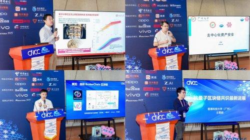 圖二 四大主題演講現(xiàn)場:北大、中大、廣州大學、港科大(廣州)專家解構量子與區(qū)塊鏈金融安全協(xié)作方案