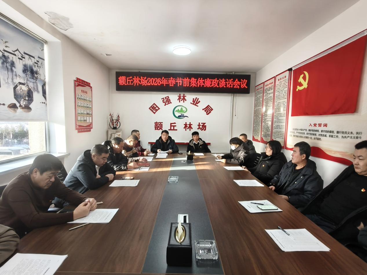 廉政談話明底線,承諾踐諾守初心。額丘林場召開春節(jié)前集體廉政談話會,專題傳達(dá)學(xué)習(xí)上級關(guān)于春節(jié)期間廉潔過節(jié)的通知要求,原文解讀相關(guān)通知精神與紀(jì)律規(guī)定,確保全體黨員干部精準(zhǔn)把握節(jié)日廉潔核心要義。會議結(jié)合關(guān)鍵崗位風(fēng)險特點,聚焦違規(guī)收送禮品禮金、違規(guī)吃喝等易發(fā)“節(jié)日病”,明確禁止性要求,督促黨員干部繃緊紀(jì)律之弦。談話會后,組織全體黨員簽訂《春節(jié)期間廉潔自律承諾書》,承諾書緊扣上級要求梳理8項核心準(zhǔn)則,從遵守中央八項規(guī)定精神到杜絕違規(guī)操辦婚喪喜慶事宜,逐條細(xì)化規(guī)范,推動廉潔要求內(nèi)化于心、外化于行。