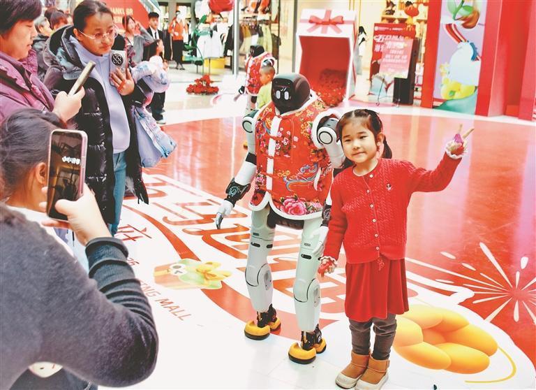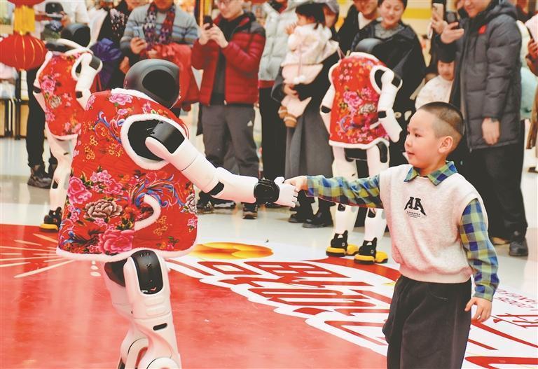 19日,正月初三。哈爾濱市道里區(qū)一家大型商場舉行了機(jī)器人舞蹈表演,吸引許多市民游客駐足觀看。走進(jìn)場地的三個(gè)機(jī)器人身高1.5米左右,穿著紅色棉坎肩,十分喜慶。在音樂伴奏下,它們翩翩起舞,動(dòng)作整齊劃一。表演結(jié)束后,機(jī)器人走進(jìn)人群,與大家握手、合影、互動(dòng)。春節(jié)假期,哈爾濱市多家商場都推出了機(jī)器人表演,讓市民游客與最新科技來個(gè)親密接觸。