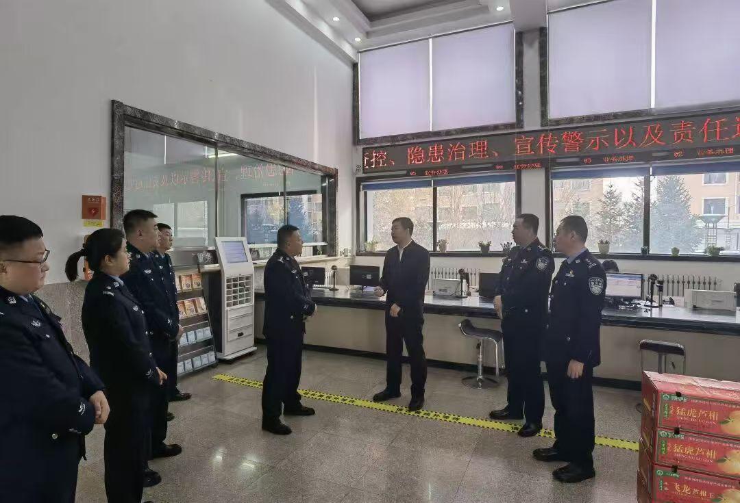 在勤儉派出所,徐雅斌實(shí)地察看辦公區(qū)、便民服務(wù)窗口等場(chǎng)所,詳細(xì)詢(xún)問(wèn)春節(jié)期間警力部署、治安防控、矛盾化解、便民服務(wù)及值班備勤情況,關(guān)切了解民輔警工作生活保障細(xì)節(jié),對(duì)民輔警深耕基層、服務(wù)群眾的扎實(shí)成效給予充分肯定。徐雅斌指出,過(guò)去一年,全市公安民輔警忠誠(chéng)履職、擔(dān)當(dāng)作為,在打擊違法犯罪、維護(hù)社會(huì)穩(wěn)定等方面成效顯著,生動(dòng)踐行了“立警為公、執(zhí)法為民”的初心使命。徐雅斌強(qiáng)調(diào),春節(jié)是萬(wàn)家團(tuán)圓的重要時(shí)刻,更是公安工作的關(guān)鍵節(jié)點(diǎn),派出所作為服務(wù)群眾的“前沿陣地”,要持續(xù)發(fā)揚(yáng)吃苦耐勞的優(yōu)良作風(fēng),堅(jiān)守崗位、履職盡責(zé),抓實(shí)抓細(xì)巡邏防控與便民服務(wù),全力守護(hù)群眾生命財(cái)產(chǎn)安全;要嚴(yán)格落實(shí)從優(yōu)待警措施,切實(shí)解決民輔警實(shí)際困難,讓大家心無(wú)旁騖投入工作。