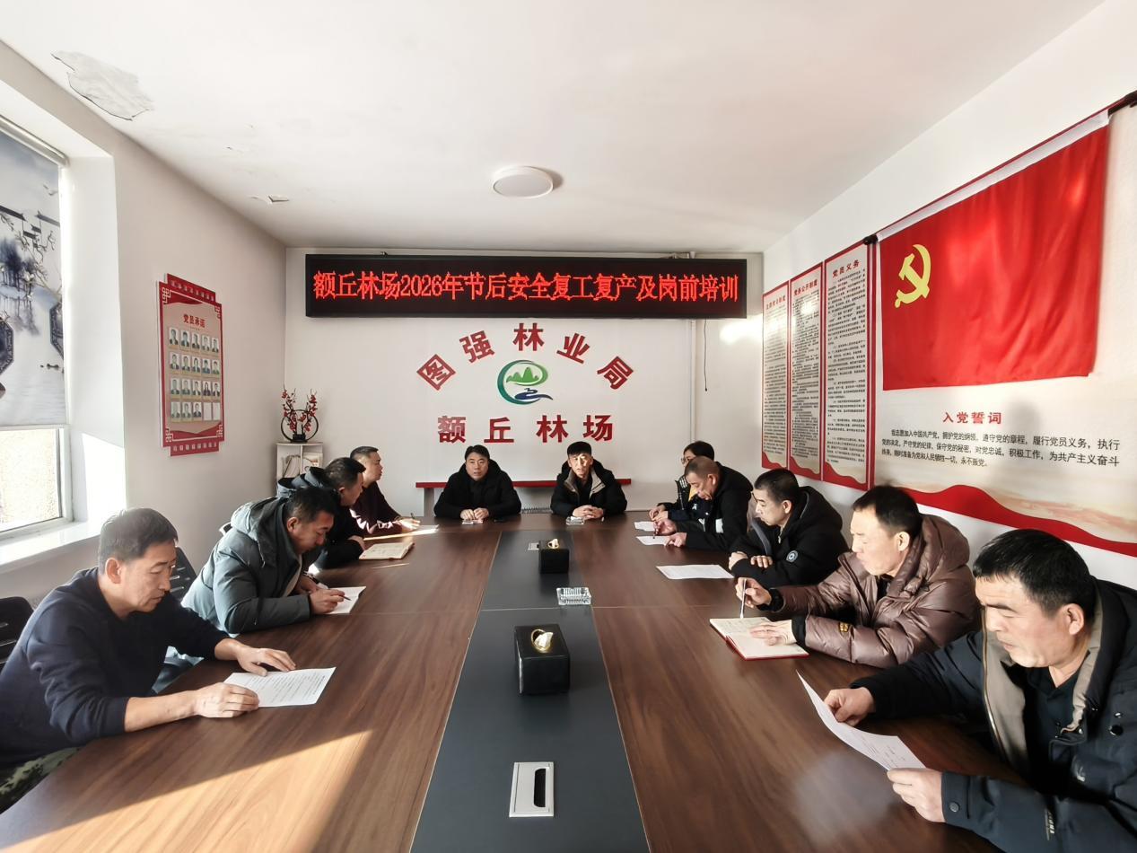 黑龍江經(jīng)濟(jì)網(wǎng)訊(劉鑫)新年春作首,萬(wàn)事行為先。春節(jié)假期過(guò)后,圖強(qiáng)林業(yè)局額丘林場(chǎng)迅速組織全體干部職工收心歸位、調(diào)整狀態(tài),全面從節(jié)日氛圍轉(zhuǎn)入工作常態(tài),把思想和精力集中到林場(chǎng)各項(xiàng)重點(diǎn)工作上來(lái),以昂揚(yáng)姿態(tài)、務(wù)實(shí)作風(fēng)開啟新一年林場(chǎng)事業(yè)高質(zhì)量發(fā)展新征程。