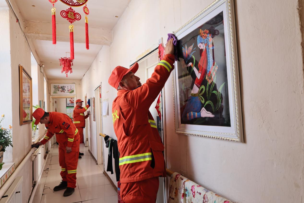 室外干勁十足,室內(nèi)溫情融融。志愿者們有的與老人促膝長談、嘮起家常,詳細(xì)詢問身體狀況和生活需求;有的拿起掃帚、抹布,細(xì)致清掃地面、擦拭門窗,把房間收拾得整潔明亮,用貼心服務(wù)溫暖老人心田。