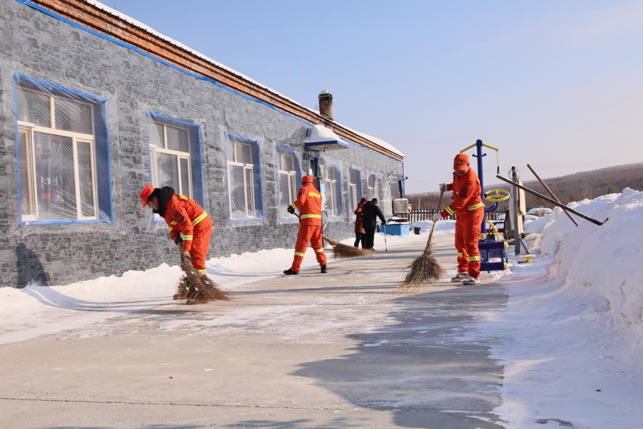 活動現(xiàn)場,機械轟鳴、黨旗飄揚。黨員志愿者們發(fā)揚防火隊伍特別能吃苦、特別能戰(zhàn)斗的精神,分工協(xié)作、奮力爭先,揮舞鐵鍬清除院內(nèi)外、道路及角落的積雪積冰,認(rèn)真清理垃圾雜物,一派熱火朝天的勞動景象。