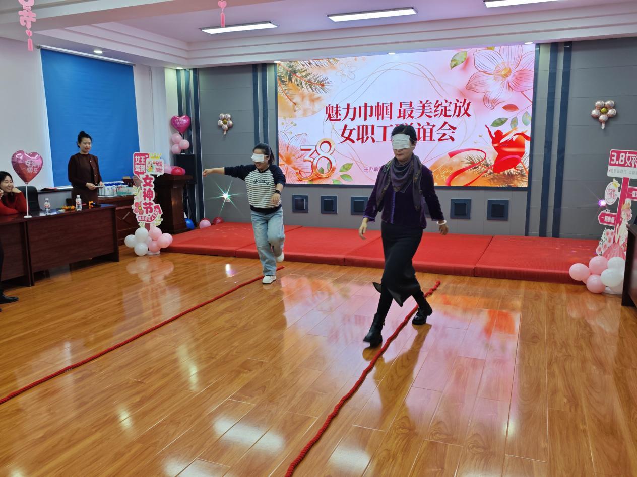 互動(dòng)游戲環(huán)節(jié)同樣妙趣橫生,“桃花朵朵開”“漏框接氣球”“蒙眼走繩子”“蒙眼喝飲料”等趣味項(xiàng)目,讓女職工們暫時(shí)卸下工作壓力,在比拼中增進(jìn)情誼,在歡聲笑語中放松身心。現(xiàn)場(chǎng)加油聲、喝彩聲此起彼伏,持續(xù)將活動(dòng)氛圍推向高潮。