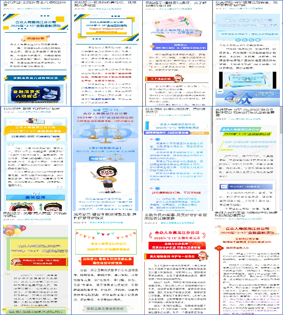 為全面貫徹落實(shí)中央經(jīng)濟(jì)工作會(huì)議、中央金融工作會(huì)議精神,深刻把握金融工作政治性、人民性,助力提升社會(huì)公眾金融素養(yǎng),幫助社會(huì)公眾增強(qiáng)維護(hù)自身合法權(quán)益的意識(shí)和能力。合眾人壽黑龍江分公司按照監(jiān)管部門及總公司有關(guān)工作要求,組織所轄各單位同步全面落實(shí)開(kāi)展2026年“3·15”金融消費(fèi)者權(quán)益保護(hù)教育宣傳活動(dòng)。