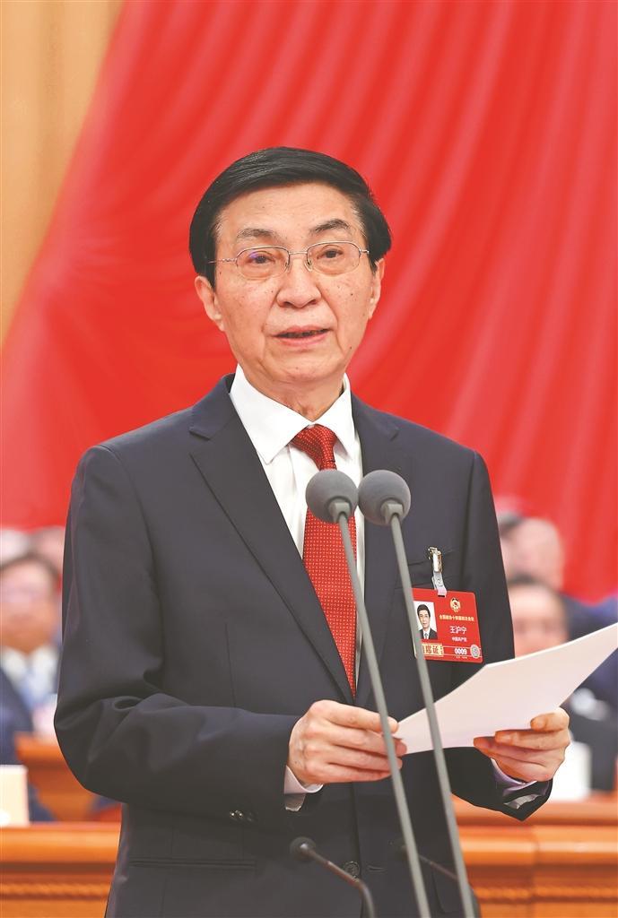 全國政協(xié)主席王滬寧主持閉幕會并講話。新華社記者 黃敬文攝