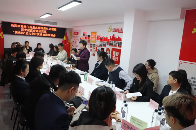 下午,澳門質量品牌國際認證聯(lián)盟一行到訪省誠促會調研交流,雙方共同召開“澳優(yōu)碼”助力龍江優(yōu)品出海座談會。