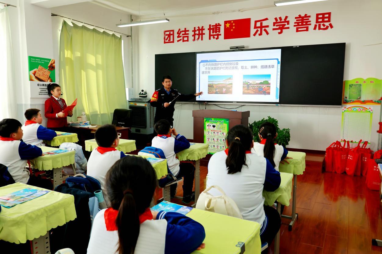 漠河站鐵路派出所的干警在向小學(xué)五年級學(xué)生講解鐵路安全注意事項(王力 攝)